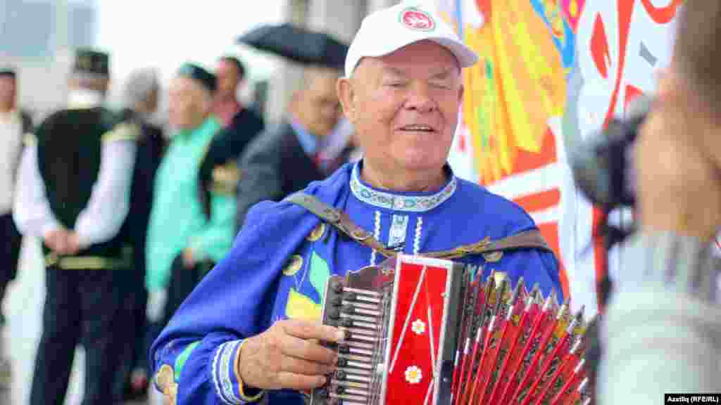 30 августа на площади перед театром Г.Камала прошел традиционный праздник "Играй, гармонь!". Шел дождь - зрителям, пришедшим к 10 утра, пришлось дожидаться начала музыкального праздника целый час. В прошлом году народу было ощутимо больше. В этот раз у театра Г.Камала не было ни одной вывески, ни одного баннера с поздравлениями с Днем Республики.