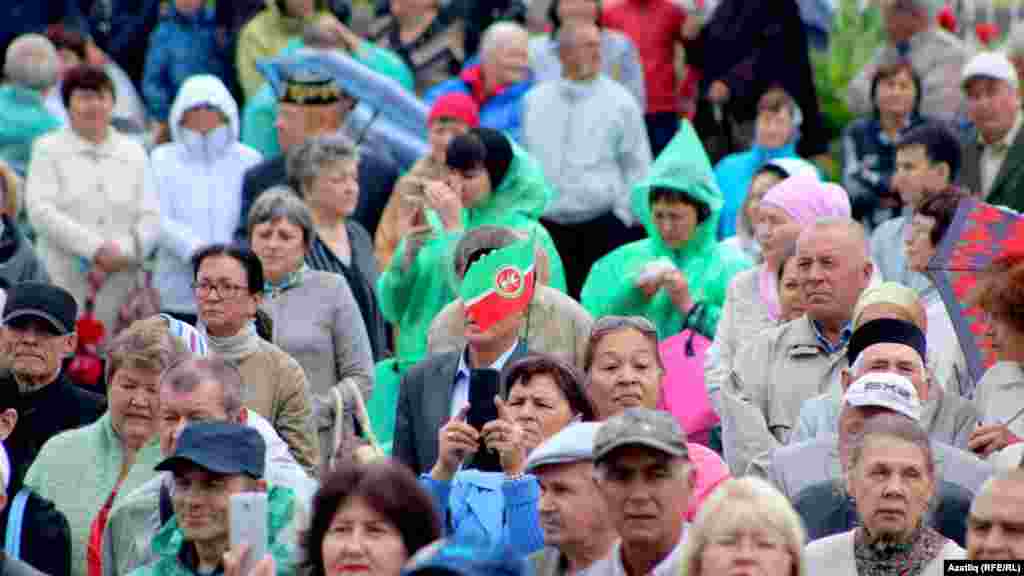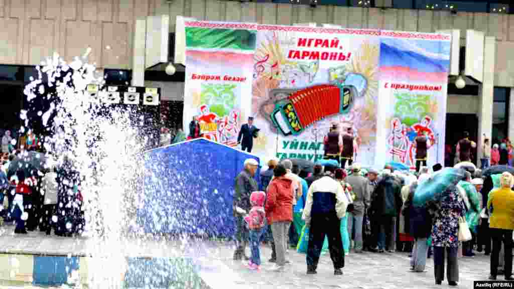 30 августа на площади перед театром Г.Камала прошел традиционный праздник "Играй, гармонь!". Шел дождь - зрителям, пришедшим к 10 утра, пришлось дожидаться начала музыкального праздника целый час. В прошлом году народу было ощутимо больше. В этот раз у театра Г.Камала не было ни одной вывески, ни одного баннера с поздравлениями с Днем Республики.