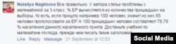 Наталия Нагимова считает, что у нас проблемы с математикой. Уважаемя Наталия, мы знаем, что явка - это отношение числа избирателей, принявших участие в выборах, к общему количеству граждан, имеющих право на участие в этих выборах, а результат ЕР - процент от всех проголосовавших.
