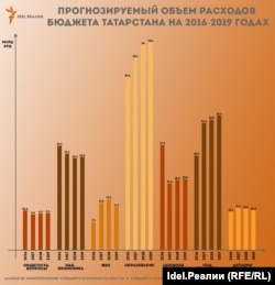 Вернемся к бюджету на 2017 год. По разделу "Общегосударственные вопросы" прогнозный объем расходов на 2017 год составил 9,4 млрд рублей, на 2018 год – 9,7 млрд и на 2019 год – 9,9 млрд рублей. В этот раздел входят расходы на содержание органов государственной власти, на пополнение объема резервного фонда кабмина Татарстана, расходы на бюджетные инвестиции и капитальный ремонт социальной и инженерной инфраструктуры госсобственности и различные госпрограммы – "Сохранение национальной идентичности татарского народа (2014 – 2019 годы)", "Реализация антикоррупционной политики Республики Татарстан на 2015 – 2020 годы" и другие.
