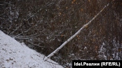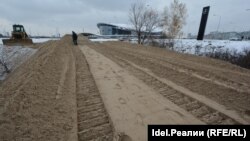 Песчаная коса вклинилась в овраг со стороны моста-дублера третьей транспортной дамбы – именно с той стороны, где еще сохранились остатки рощи, большая часть которой была уничтожена минувшим сентябрём. Как портал Idel.Реалии выяснил тогда же, на площади почти в 4 га собираются оборудовать наземную парковку.