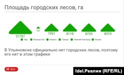 В Ульяновской области радикальное сокращение площади городских лесов наблюдается даже в Лесном плане. Согласно документу по состоянию на 1 января 2010 года в Ульяновской области было 3,2 тысяч га городских лесов. Их львиная доля – 2,9 тысяч га - находилась в Ульяновске. А на начало 2016 года городских лесов осталось 390 гектаров на всю область: 190 га – в Димитровграде, 160 га – в Барышском районе, 30 га – в Инзенском и 10 га – в Сурском. И нисколько – в столице (к счастью, в ней пока еще есть леса на землях лесного фонда – 0,8 тыс. га и обороны и безопасности – 2,5 тыс. га).