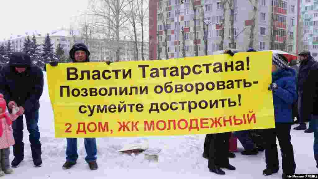 Митинг реготделения КПРФ и Союза профсоюзов СОЦПРОФ сегодня объединил вокруг себя сразу несколько групп протестующих — клиентов Татфондбанка и Интехбанка, дольщиков ЖК "Молодежный" и ЖК МЧС, жителей Осиново, чьи дома определили под снос, "детей войны" и жителей домов на Фучика, где власти забрали придомовую территорию для стоянки. Акция прошла в сквере им. Карима Тинчурина и собрала более 500 человек.
