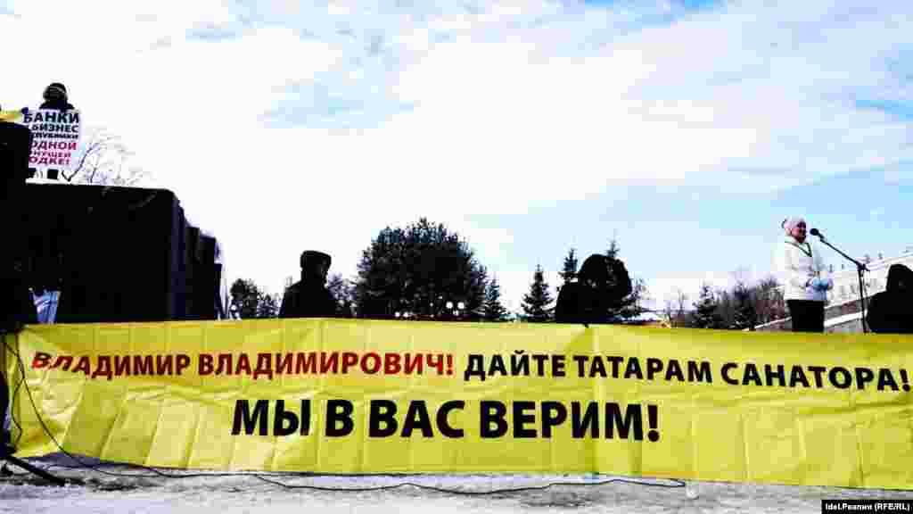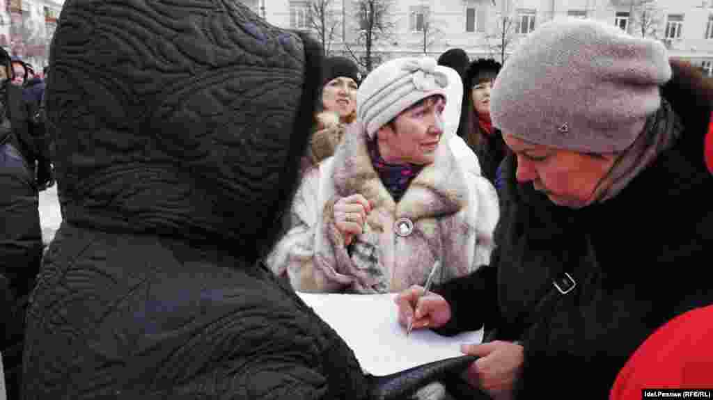 В Казани сегодня, 26 февраля, прошел очередной митинг клиентов Татфондбанка и Интехбанка. Акция прошла в гайд-парке — парке Петрова в Кировском районе Казани — и собрала около трехсот человек. Протестующие потребовали санации банка, ответа от республиканских властей и импичмента Путину, при этом собрав подписи под письмом именно к российскому президенту. Смотрите наши фотогалереи здесь.