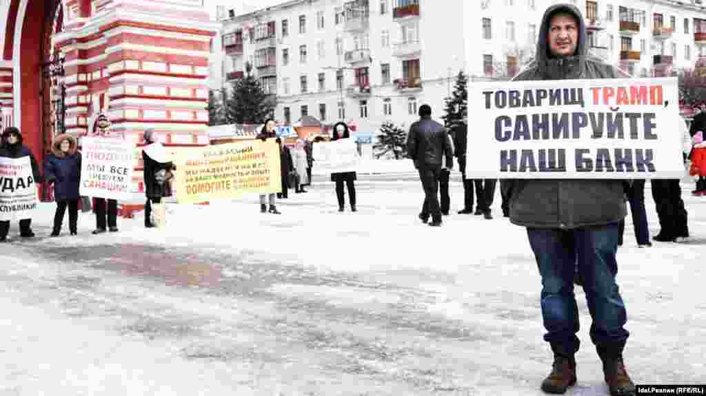 В Казани прошел митинг клиентов Татфондбанка и Интехбанка, собравший несколько сотен человек.