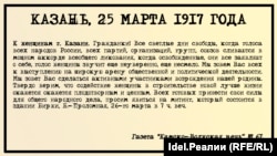 Надвигаются дни, когда будут заложены и закреплены основы нового социально-политического устройства нашей страны. И мы, женщины, не можем дольше молчать и оставаться бездеятельными. Мы зовем Вас всех к выступлению на широкую арену общественной и политической деятельности. Мы зовет Вас сделаться активными участниками возрождения нашей родины. Твердо верим, что содействие женщины в строительстве новой лучше жизни окажется окажется плодотворным и ценным. Всех готовых принести свои силы для общего народного дела, просим явиться на митинг, который состоится в здании Биржи, Б.-Проломная, 26-го марта в 7 ч. веч.