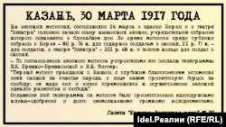 "Первый митинг гражданок г. Казани, с глубоким благоговением вспоминая всех павших за счастье народа, в лице вашем приветствует борцов за свободу, не щадя сил и жизни стремившихся к осуществлению великих идеалов равенства и свободы".