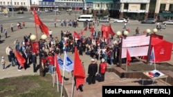 На митинг пришли также дольщики и пострадавшие клиенты Татфондбанка. В начале акции Миргалимов зачитал поздравительную телеграмму главы партии Геннадия Зюганова, который обвинил "либералов, демократов и реформаторов" в проблемах России. Хафиз Миргалимов, в свою очередь, заявил, что Россия должна встать на путь социализма и провозгласил: "Да здравствует Ленин, Сталин!"".