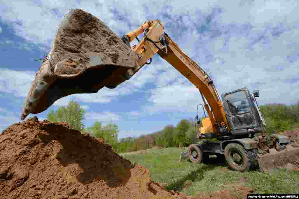 Рядом на лужайке отпечатались следы проезда техники.