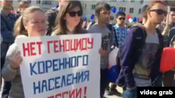 Позднее был задержан Азат Габдульвалеев. Полицейские сообщили, что он нарушил порядок проведения митинга. Причина – плакат "Нет геноциду коренного населения России", который держала одна из участниц митинга. Этот плакат сочтен не относящимся к теме митинга. Позднее выяснилось, что были также задержаны Левина и Зинатуллина. По словам Нисанбековой, одна из них как раз и пришла на митинг с плакатом "Нет геноциду коренного населения России". Причины задержания второй девушки неизвестны. По некоторым данным, она является несовершеннолетней, однако закон не запрещает несовершеннолетним принимать участие в митинге.