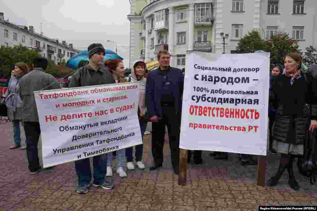 В субботу, 9 сентября, в Казани состоялся митинг "Союза пострадавших клиентов Татфондбанка и Интехбанка". Он собрал около 150 человек.