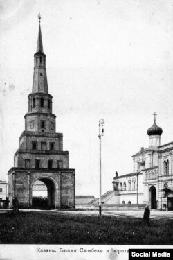 Дело в том, что башня "Суюм-Бика", несмотря на свое татарское название, отношения к татарскому искусству и к истории татарской Казани не имеет. Оно — памятник русского зодчества, весьма напоминающий по стилю башни московского кремля. И построена она не раннее XVII в., а может быть и в XVIII ст. По крайне мере на двух видах Казани, приложенных к книге голландца Витзена: "Татария восточная и западная" (издания 1692 и 1705 г.г.), этой башни нет. Нет, следовательно оснований военному комитету присваивать ее себе, а тем более увенчивать полумесяцем — мусульманской религиозной эмблемой.
