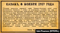 "Попытка выпустить очередной номер "Камско-Волжской речи" после многодневного молчания 7 ноября не увенчалась успехом, так как по распоряжению, подписанному командующим войска Ершовым и начальником гарнизона шт.-кар. Марсельским отряд красной гвардии занял в два часа утра 7 ноября Центральную типографию, печатавшую нашу газету, причем печатание газеты было приостановлено. В 2 часа дня Исполнительное бюро совета рабочих, солдатских и крестьянских депутатов объявило типографию секвестированной для нужд учредительного собрания и совета с, р и кр. депутатов с тем, чтобы в этой типографии печаталась трудовая газета."