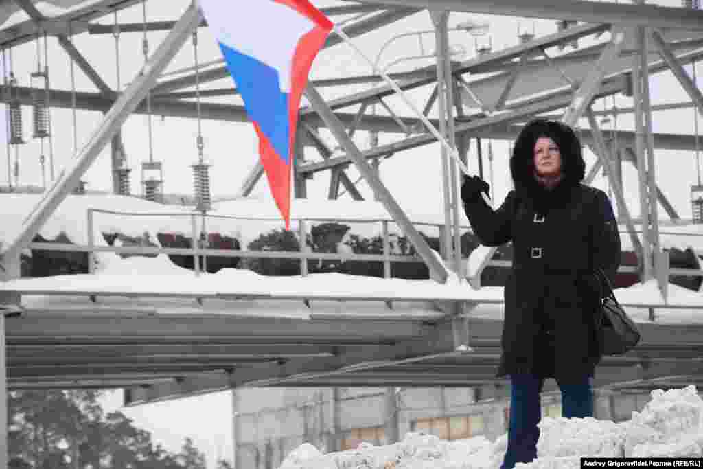 Протестующие держали в руках флаги России, красные воздушные шары, таблички со словом "забастовка", плакаты "18 марта выбираю забастовку", "Мне стыдно голосовать", "Сам не иду и вам не советую!", "Мне некого выбирать!"