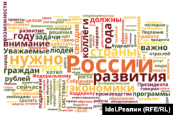"Idel.Реалии" проанализировали все 14 посланий Путина на наличие в них слов "государство", "демократия", "свобода", "выборы", "террор", "война", "армия", "патриотизм", "суверенитет", "власть", "кризис", "право/закон/права", "инвестиции" и "коррупция", а также их производных.