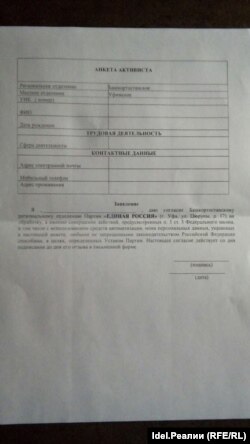 В Башкортостане первые сообщения о такой "мобилизации" появились еще в январе, когда местный штаб Навального опубликовал в своем Facebook-аккаунте фото так называемой "анкеты активиста", сообщив, что такие анкеты от имени "Единой России" распространяются в уфимских школах: