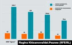 Однако за счет большого количества получаемых подрядов итоговая цифра впечатляет. Так, общая сумма, вырученная всеми компаниями за несколько лет, в одном только Татарстане составляет два миллиарда рублей. За скобками остаются многочисленные тендеры, разыгранные в Москве и Санкт-Петербурге, Башкортостане, Удмуртии, Чувашии, Оренбургской и Самарской областях, ряде других регионов России.