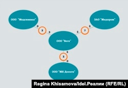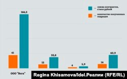 Центральной в этой схеме закупок выступает ООО "Вега". Расследовательской группе "Idel.Реалии" не удалось подтвердить или опровергнуть связи этой компании с другими фирмами, фигурирующими в тексте. Однако источник информации утверждает, что "Вега" также связана с руководством РКОД.