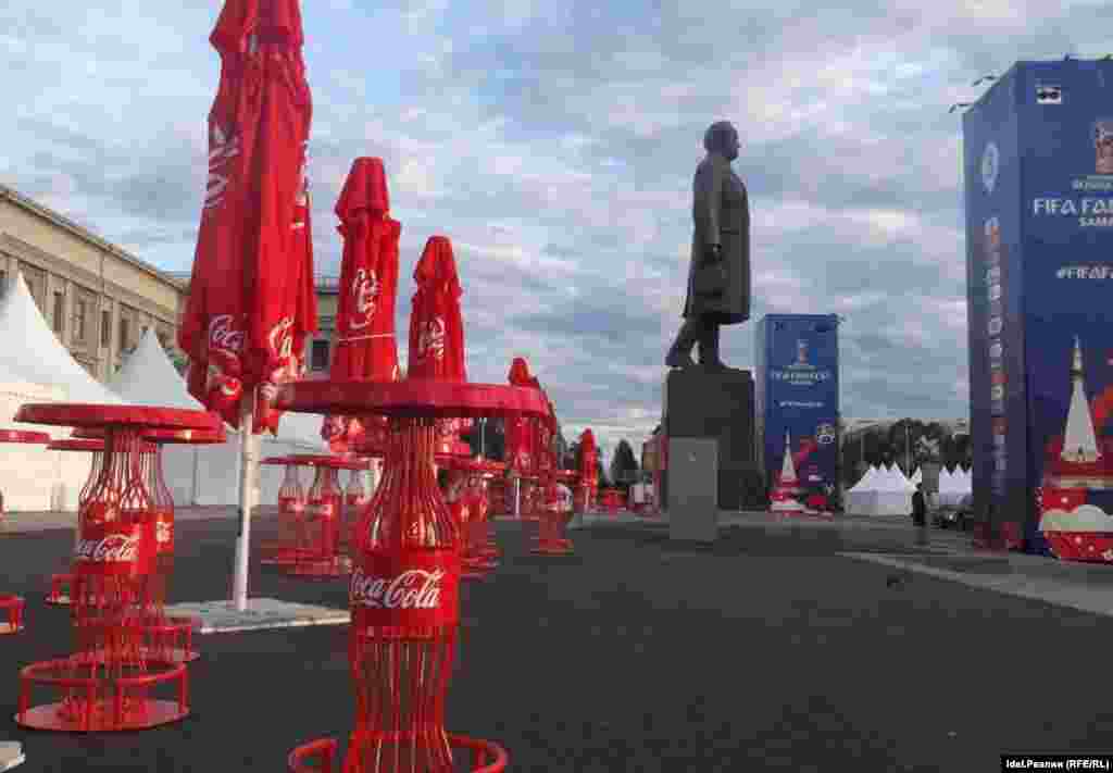 В Самаре за неделю до Чемпионата мира по футболу-2018 газоны украшены огромными цветниками-мячами, на набережной и площади Славы красуются фигуры символа Мундиаля: Волка-Забиваки. На площади Куйбышева за скрытым памятником революционеру устроена главная самарская фан-зона Чемпионата с огромным цифровым табло для трансляций матчей, точками общепита, медпунктами и общественными туалетами. На остановках общественного транспорта установлены табло с информацией о Самаре и расписаниями движения шаттлов, доставляющих болельщиков на стадион "Самара Арена". Скверы и набережная сияют новенькими скамейками для туристов. Здесь посмотрите как в Самаре обновляли старинные дома.