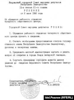 Аналогичные решения с таким же требованием были приняты сессиями Дюртюлинского, Кушнаренковского, Чекмагушевского и других горрайсоветов западных и северо-западных регионов РБ, где, как известно, абсолютное большинство составляет татароязычное население. Однако уже тогда, находясь под идеологическим влиянием антитатарски настроенной части местной интеллигенции, председатель Верховного Совета Муртаза Рахимов намеренно тянул с решением по данному вопросу. "Успешно" дотянув с этим вплоть до осени 1993-го. В итоге парламент республики так и не рассмотрел вопрос о статусе татарского языка.