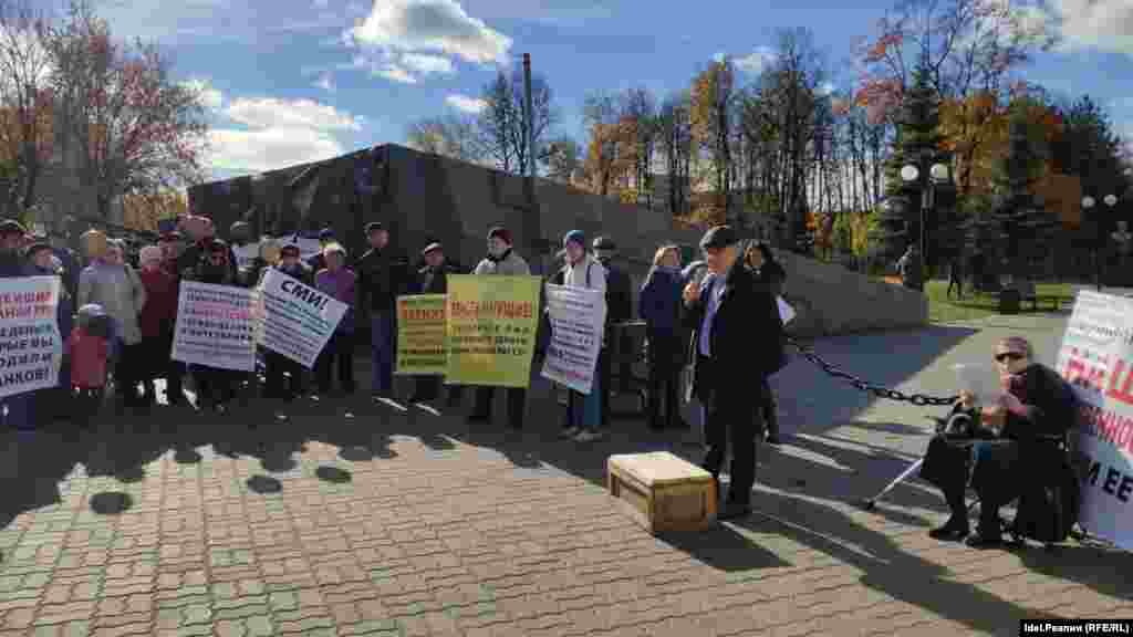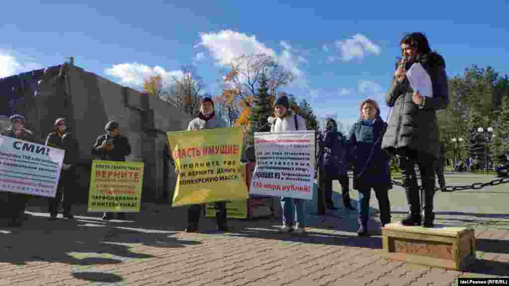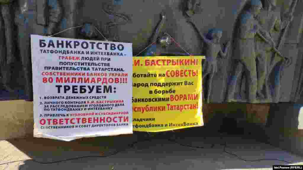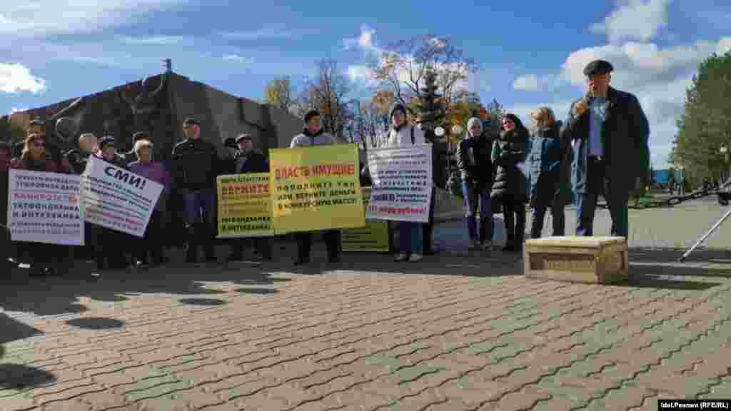 В Казани сейчас приходит митинг кредиторов Татфондбанка и Интехбанка. Это вторая массовая акция в этом году, прошлая состоялась в феврале. На митинге, по оценкам корреспондента "Idel.Реалии", около 200 человек. Посетил мероприятие и глава Республиканского фонда поддержки Айрат Нурутдинов.
