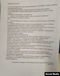 "Необходимо также вам организовать голосование среди муниципальных служащих и членов их семей, среди работников муниципальных учреждений, организаций и предприятий. Начиная с 16.11.2018 до 08:30 прошу направлять информацию по результатам голосования за предыдущий день на мой эл.адрес: rukap.NK@tatar.ru", — сказано в документе.