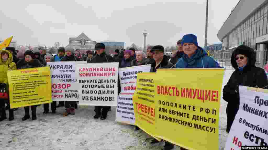 Организатор сегодняшнего митинга — созданное 21 ноября общественное движение "Советы общественной самоорганизации РТ". Его цель, согласно уставу, — "путем общественной самоорганизации, объединения усилий общественности способствовать созданию и развитию социально справедливого, социально ориентированного государства".