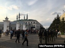 Сотрудники "Росгвардии" пытались перекрыть протестующим движение, но им удалось обойти правоохранителей. На улице Баумана полицейские задержали еще одного активиста. В итоге протестующим разрешили дойти до Казанского Кремля. Подходя к резиденции президента Татарстана, активисты скандировали "Нет срокам за репосты", "Он нам не царь" и "Пенсионный грабеж".