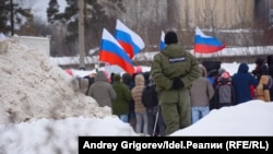 В конце митинга часть протестующих решила пройти шествием до Казанского Кремля. Толпа двинулась по улице Татарстан. Через пару сотен метров на обочине остановился автозак, из него выбежали сотрудники полиции и задержали Батырхана Агзамова, который нес в руках флаг Татарстана.