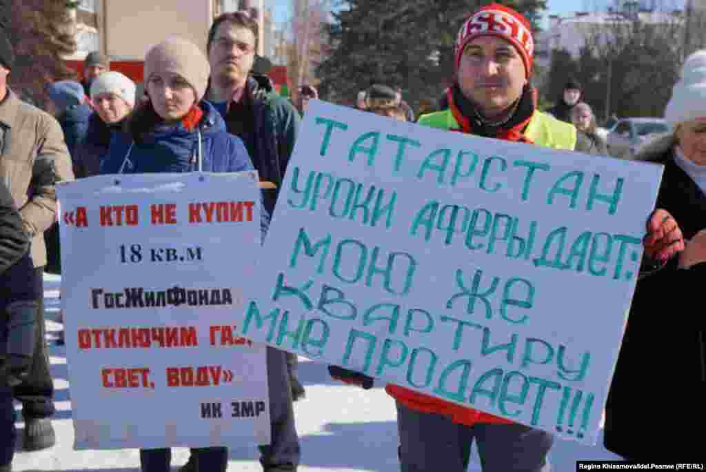 Сегодня, 10 марта, в Зеленодольске, на площадке ДК "Родина", около 250 жителей вышли на митинг против программы переселения из аварийного жилья.