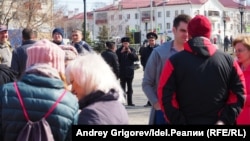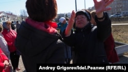Утром 10 апреля на Комсомольской площади Дербышек (по ее третьей части как раз пойдет магистраль), нас встречает толпа. Мы просили о встрече двух-трех активистов (чтобы показали на месте, что и как затрагивает трассу) — нас ждет не меньше полусотни. Это второй стихийный сход. Первый, за два дня до этого, вечерний, собрал несколько сотен человек.