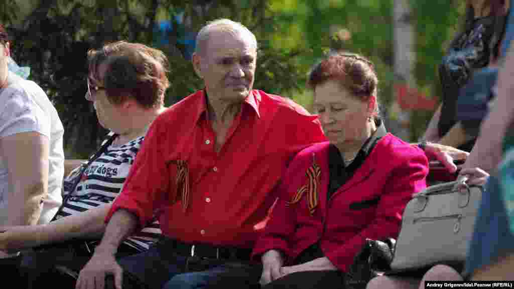 Георгиевские ленты и автомобильные наклейки, которыми уже давно никого не удивишь, оказались потеснены зёлеными пилотками с красными звёздами. Так что теперь георгиевские ленты, вокруг которых поломали столько копий, практически незаметны в пестрой толпе (возможно, потому, что они уже на каждом втором встречном). Тут, правда, тоже заметна некоторая эволюция — некоторые ленты украшены значками и цветочными бутонами — но куда больше бросаются в глаза именно красноармейские пилотки. Торговцы ими расположились у входа в казанский парк Победы. Недорого, 200 рублей — штука. Правда, на взрослые головы головных уборов у продавцов немного. Не то большие размеры уже расхватали, не то основная целевая аудитория — дети.