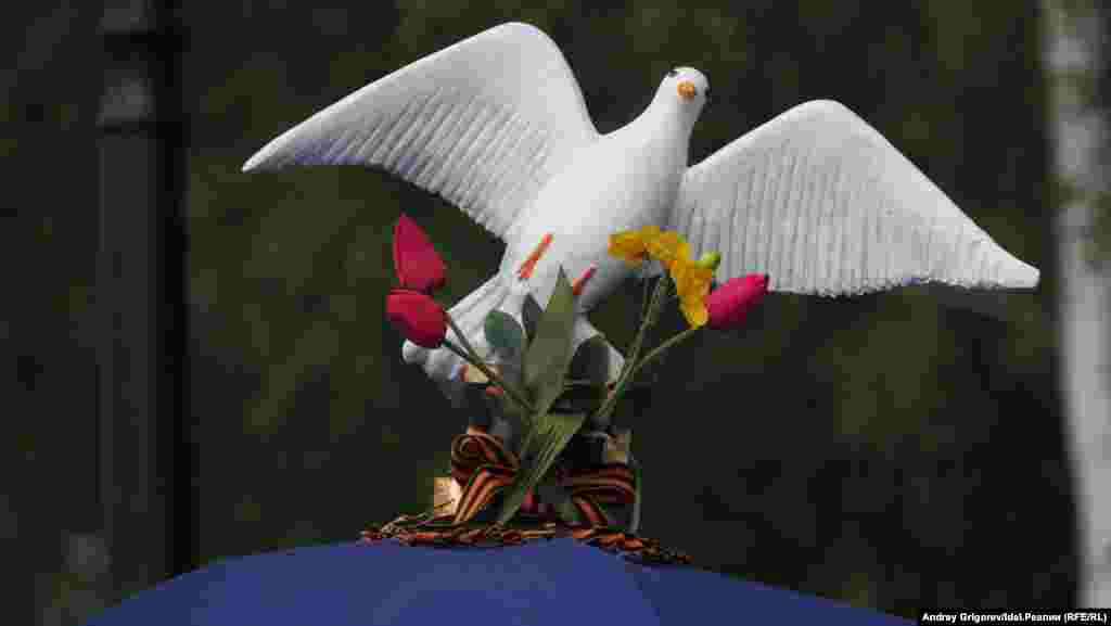 Георгиевские ленты и автомобильные наклейки, которыми уже давно никого не удивишь, оказались потеснены зёлеными пилотками с красными звёздами. Так что теперь георгиевские ленты, вокруг которых поломали столько копий, практически незаметны в пестрой толпе (возможно, потому, что они уже на каждом втором встречном). Тут, правда, тоже заметна некоторая эволюция — некоторые ленты украшены значками и цветочными бутонами — но куда больше бросаются в глаза именно красноармейские пилотки. Торговцы ими расположились у входа в казанский парк Победы. Недорого, 200 рублей — штука. Правда, на взрослые головы головных уборов у продавцов немного. Не то большие размеры уже расхватали, не то основная целевая аудитория — дети.
