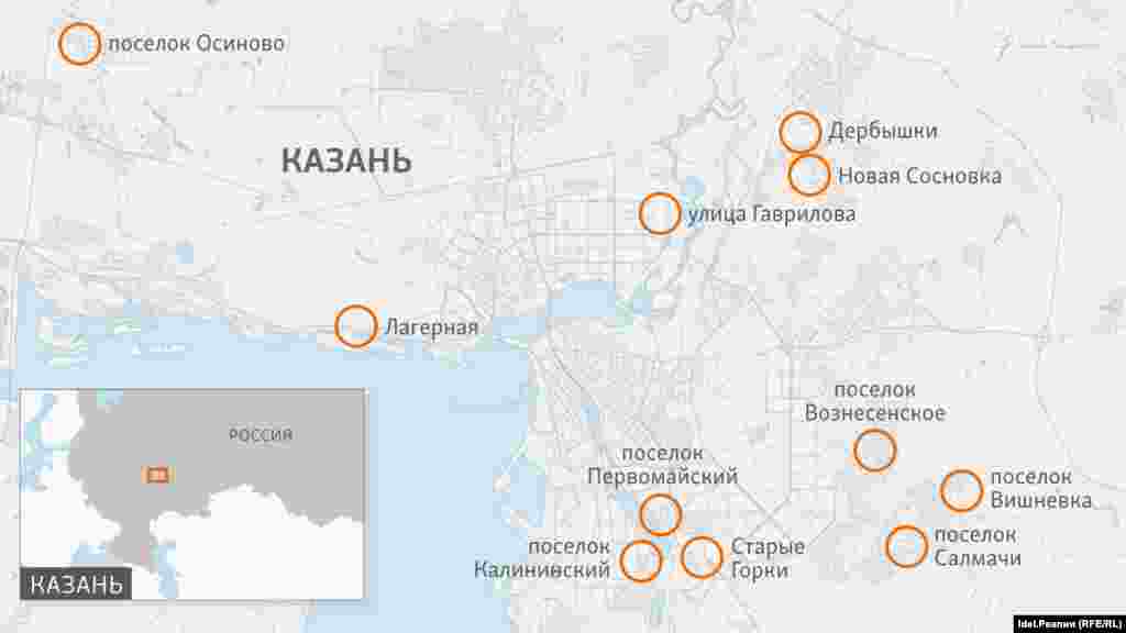 Эта карта наглядно показывает, жители каких районов столицы Татарстана недовольны новым генпланом Казани. Сады на "Лагерной" готовятся закатать в асфальт. Берег Казанки на улице Гаврилова планируют отдать под застройку. Через Дербышки хотят проложить автостраду, фактически разделив поселок пополам. Через Новую Сосновку, Салмачи, Вознесенское, Вишневку пройдет Восточная дуга (дорога-дублер федеральной трассы М7). Жители Старых Горок, Первомайского и Калининского обеспокоены тем, что их районы будут плотно застраиваться.