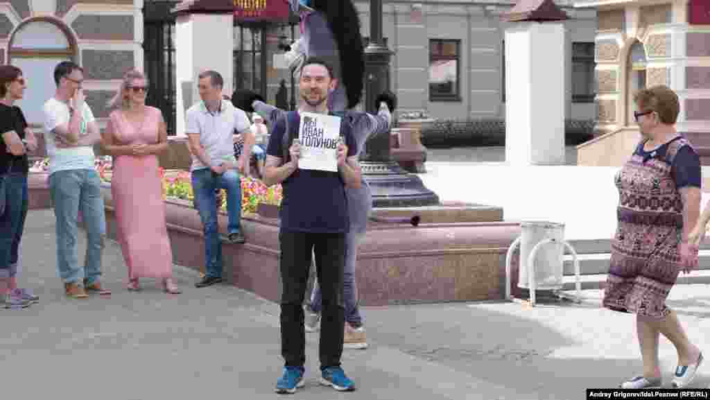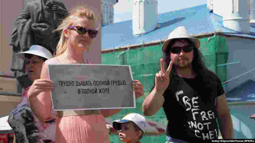 Казань внесла свою посильную лепту в протест против полицейского произвола. В среду, 12 июня, одиночные пикеты прокатились по городу всполохами. Первым, около девяти утра, на пешеходную улицу Баумана вышел активист Никита Храмов. Здесь же, в 11 часов, собралась целая группа гражданских активистов и журналистов. Поочередно сменяли друг друга под памятником Шаляпину с плакатами колумнист "Idel.Реалии", социолог Искандер Ясавеев, гражданский активист, журналист и музыкант Радиф Кашапов, журналист "Idel.Реалии" Алина Григорьева, активист Александр Ганько, активист движения против строительства мусоросжигательного завода в Казани Елена Изотова. Группа противников МСЗ оказалась в итоге самой большой: ближе к полудню к пикетчикам присоединились Вера Керпель, Ирина Никофорова, Андрей Китов. Они же разбавили главную повестку пикетов — освобождение из-под стражи других жертв полицейских репрессий, отставка главы МВД РФ Колокольцева, наказание заказчиков "дела Ивана Голунова" — экологической повесткой.