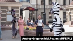 На Баумана тем временем вовсю бурлит привычная жизнь. Люди спешат мимо, редкий прохожий останавливается, чтобы снять плакат на камеру, а тем более — заговорить. По соседству с пикетчиками настраивают свои инструменты музыканты. Раскрыв свои объятья, на активистов буквально набрасываются "Осёл" и "Зебра" — парни в гигантских плюшевых костюмах животных, зарабатывающие на фото с отдыхающими. В этот момент даже серьезный Радиф, в очередной раз развернувший свой плакатик, не может сдержать смеха. "Осёл" недавно прославился тем, что полиция задержала его за незаконное предпринимательство — таковым, по мнению стражей, порядка является требование денег за фото — но 12 июня блюстителям закона точно не до "Осла": всё внимание приковано к пикетчикам.