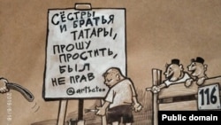 Он опубликовал очередную карикатуру с текстом "Сестры и братья татары, прошу простить, был не прав".