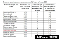 Суицидальная ситуация среди несовершеннолетних по субъектам Приволжского федерального округа выглядит следующим образом.