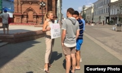 В беседе с "Idel.Реалии" Керпель отметила, что вышла с целью "призвать ЦИК Татарстана к проведению честных выборов и регистрации независимых кандидатов".