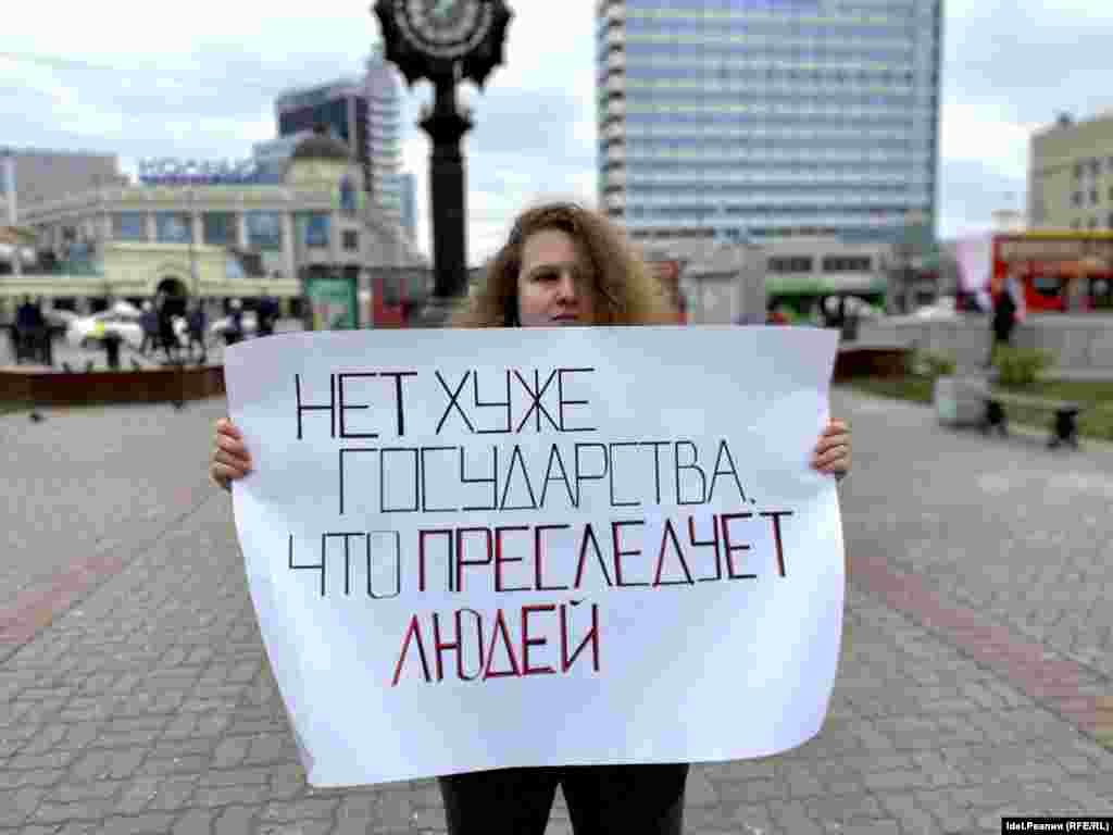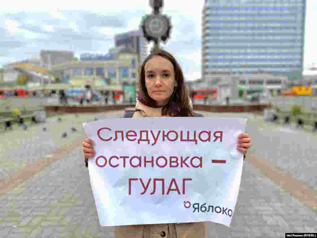 Сегодня, 20 октября, в центре Казани — у часов на улице Баумана — проходит серия одиночных пикетов в поддержку фигурантов "московского дела", а также против репрессий в отношении Фонда борьбы с коррупцией, основанного политиком Алексеем Навальным. Мероприятие проходит в формате сменяемых одиночных пикетов у часов на улице Баумана. Участники акции стоят с плакатами и сменяют друг друга каждые 5-10 минут. За пикетами наблюдает сотрудник полиции, который переписывает паспортные данные пришедших.