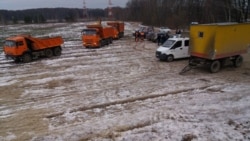 Сегодня, 16 декабря, утром, рядом с лагерем появилась техника: камазы и автомобиль МЧС. Жители лагеря соорудили подобие баррикад из палет
