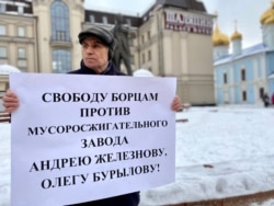 Председатель президиума Всетатарского общественного центра (ВТОЦ), член движения "Долой МСЗ" Фарит Закиев также вышел сегодня в одиночный пикет — он стоял у памятника Шаляпину с плакатом "Свободу борцам против мусоросжигательного завода Андрею Железнову, Олегу Бурылову".