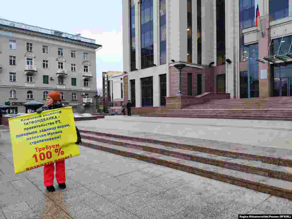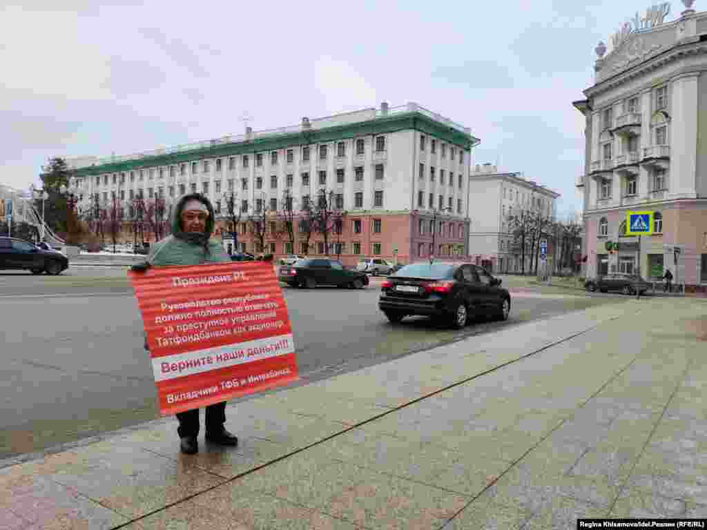 В 2016 году Центральный банк России ввел мораторий в Татфондбанке — одном из крупнейших банков республики. Вслед за ним Татарстан потерял еще несколько финансовых организаций и чуть было не лишился всей своей банковской системы. Тысячи людей и компаний потеряли своих деньги в банках. С тех пор прошло три года. Вкладчики в этом году решили не проводить митинг в день краха где-то на окраине города, как этого хотели власти, и вышли на серию пикетов к зданию правительства. За реакциями чиновников, выходящих из кабмина, пикетирующими и работой полиции — наблюдала корреспондент "Idel.Реалии".