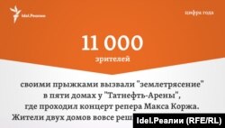 Вечером 14 апреля жители нескольких домов по улице Чистопольской в Казани стали звонить в МЧС. Они жаловались на землетрясение — ощущали толчки и вибрации, люстры в квартирах раскачивались, посуда звенела. Несколько жителей двух домов вовсе решили эвакуироваться. Позже стало ясно — причина в концерте белорусского репера Макса Коржа, который проходил рядом в "Татнефть-Арене". "Землетрясение" вызвали прыжки 11 тысяч зрителей.