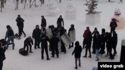 на опубликованной видеозаписи можно заметить, как силовики отрабатывали на девятиклассниках Новотроицкой средней школы разгон протестующих. Школьники "нападали" на полицейских, те их оттесняли щитами, а другие ученики "задерживали". В МВД по РТ заявляли, что учащиеся только наблюдали за происходящим под контролем педагогов, а "нападавшими" были переодетые полицейские.