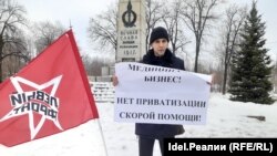 В воскресенье, 19 января, в Самаре у памятника борцам революции местное отделение Левого Фронта провело одиночные пикеты против аутсорсинга службы скорой помощи и против политического насилия.