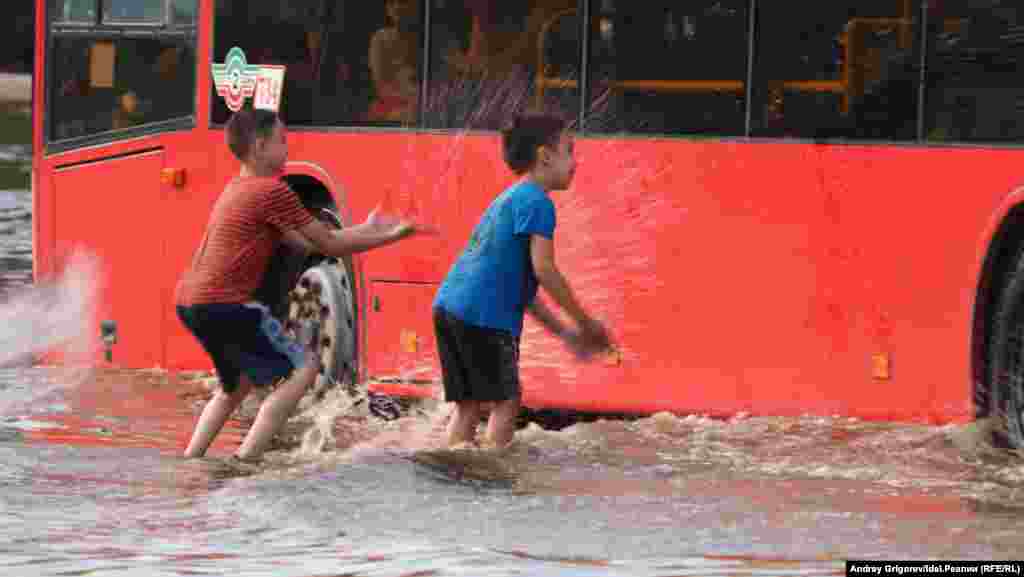 Местные дети, впрочем, восприняли всё происходящее с энтузиазмом. Они брызгали водой в проходящий мимо транспорт, а некоторые даже купались. Напомним, 6 июня в Казани была ясная, жаркая погода.