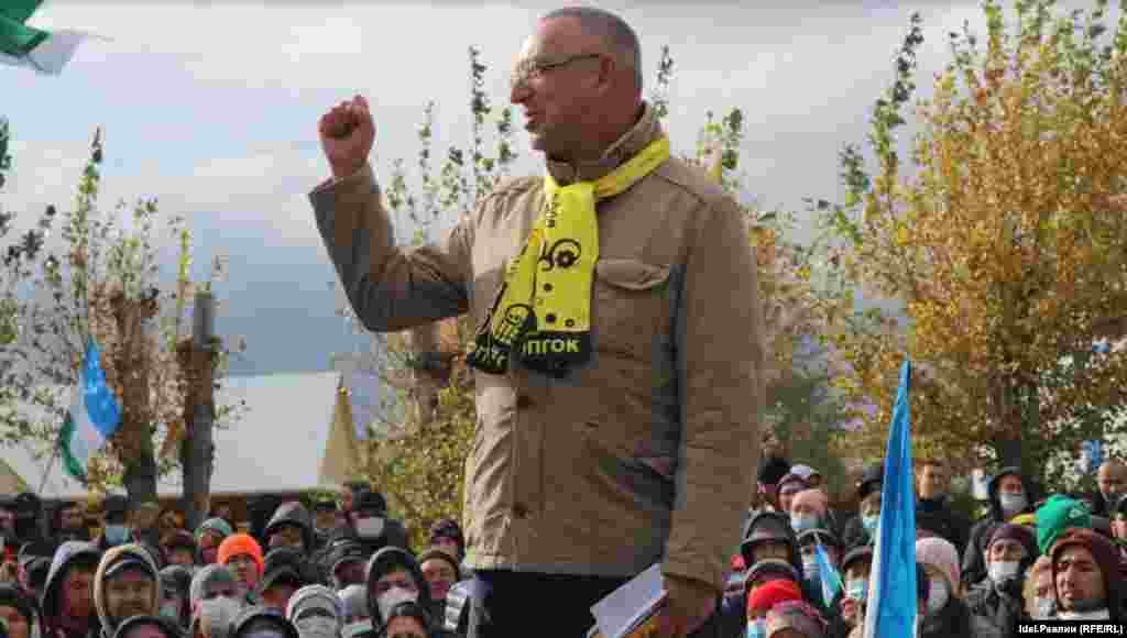 На сходе выступили представители защитников шихана Куштау и активисты движения "СтопГОК" из Челябинской области, где "Русская медная компания" строит на базе Томинского месторождения медно-порфировых руд горно-обогатительный комбинат.