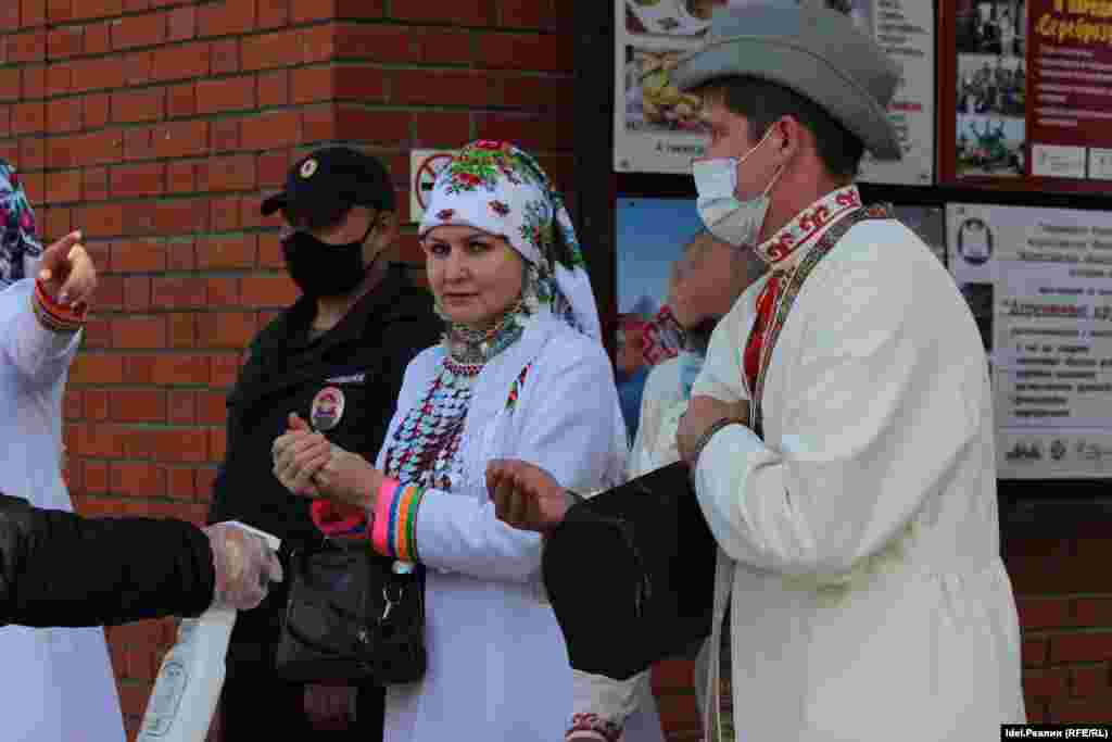 Организаторы "Пеледыш Пайрем" выдавали всем посетителям кремля одноразовые маски, обрабатывали руки входящих антисептиком. Вероятно, большая часть зрителей была в масках.