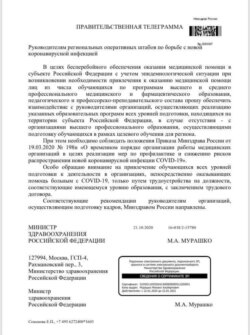 В октябре глава Башкортостана Радий Хабиров на оперативном совещании сообщил о тяжёлой фазе пандемии коронавируса. По его словам сейчас ситуация гораздо сложнее, чем весной. Одновременно с этим в аптеках пропадают антибиотики, витамины и другие лекарства. Медики заявляют о нехватке мест в ковид-госпиталях. На фоне таких событий начала распространяться телеграмма от Министра здравоохранения М. А. Мурашко, в которой указано, что со 2 ноября всех студентов старших курсов медицинских университетов будут отправлять на работу в поликлиники.